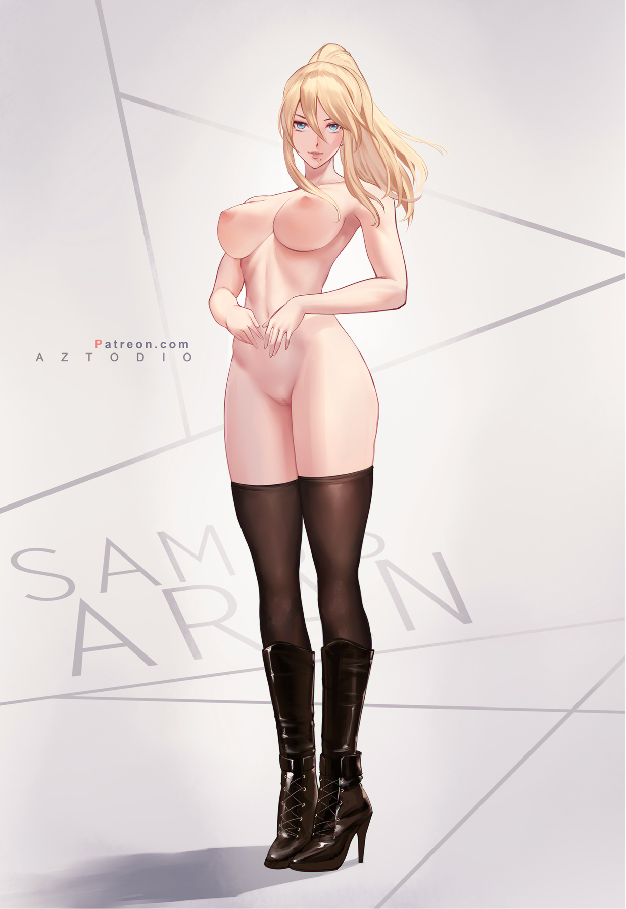 Sleek Samus in a shiny slit Zero-Suit (Olga Narhova) [Metroid]