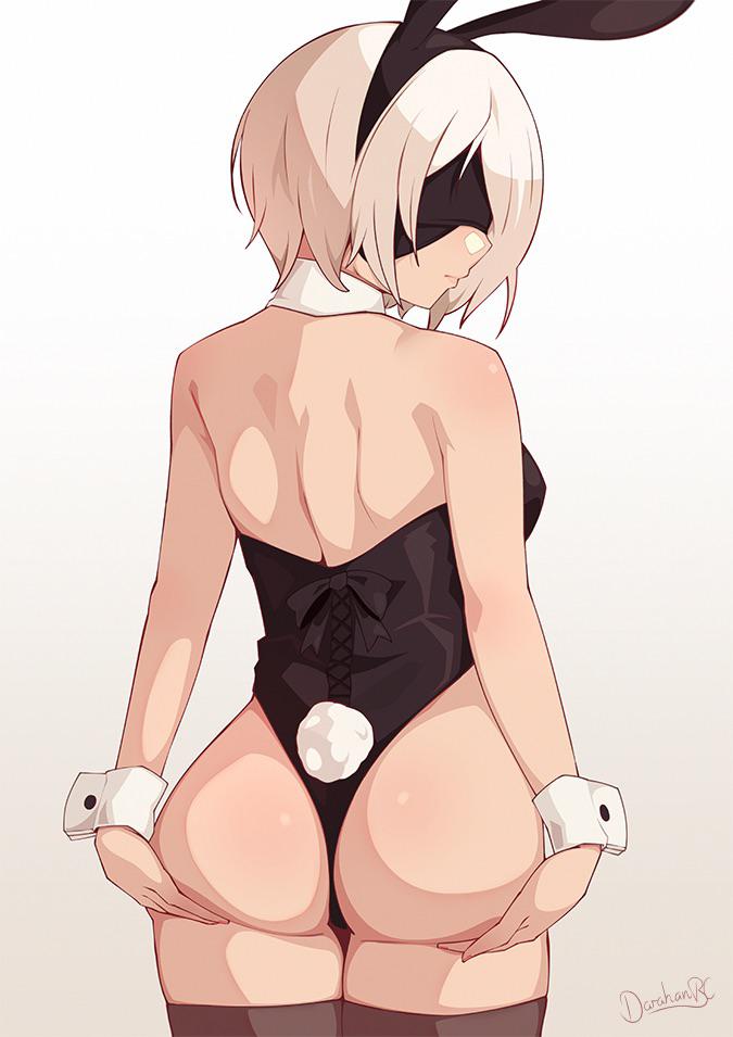 2B showing off how good her butt looks in her bunny suit (Darahan) [Nier Automata]