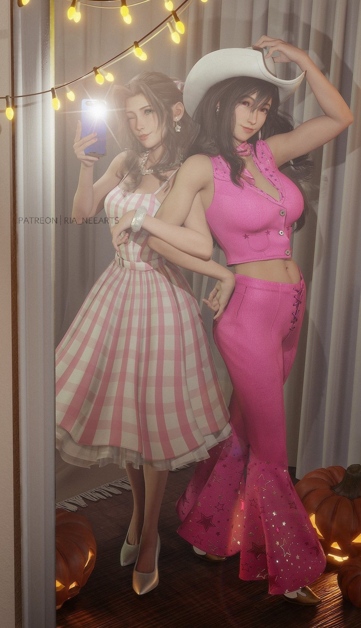 Tifa and Aerith as Barbie for Halloween!