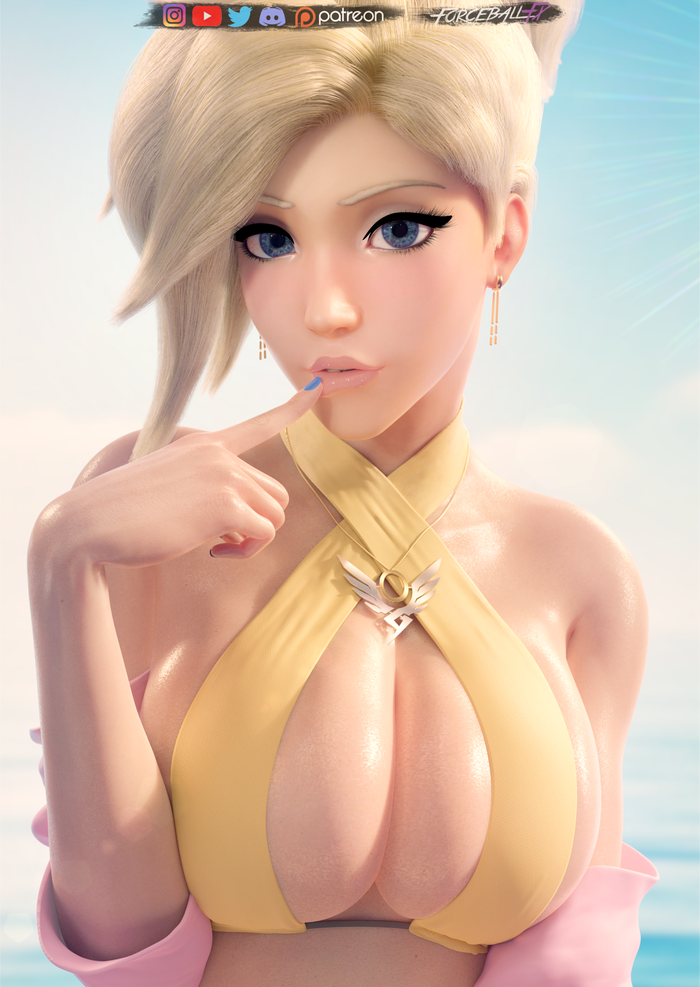 115.8 Mercy sitting in a gold bikini flashing the viewer