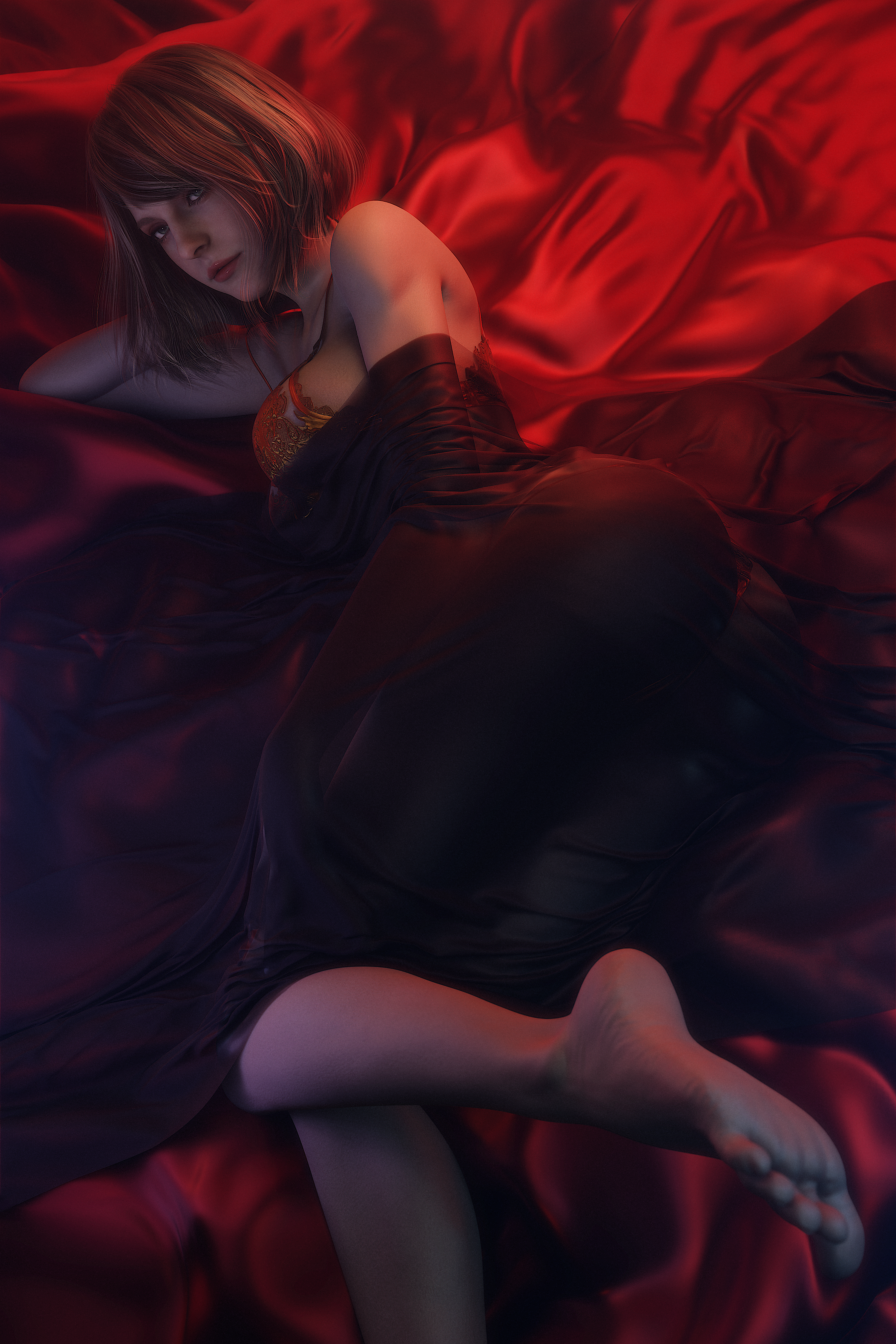 Ashley Graham sitting on a chair by the ocean in a red bikini.
