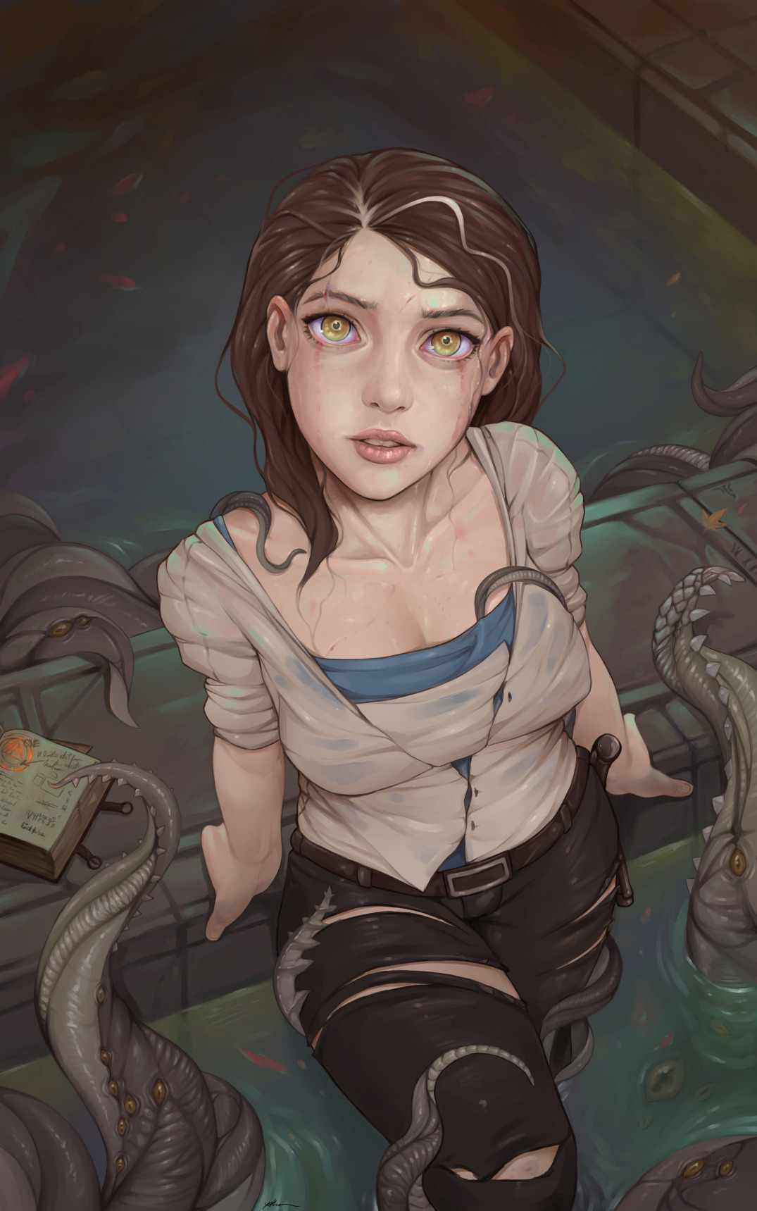 Commissioned by Amanda CloverThe book cover for her Lovecraftian CYOA book. Which you can get hereDifferent monsters, 83 endings aaand pretty fucken nsfw.So if you enjoy this kinda thing check it out!Anyways.. i hope you like my more “realistic” approach to this. Enjoy!