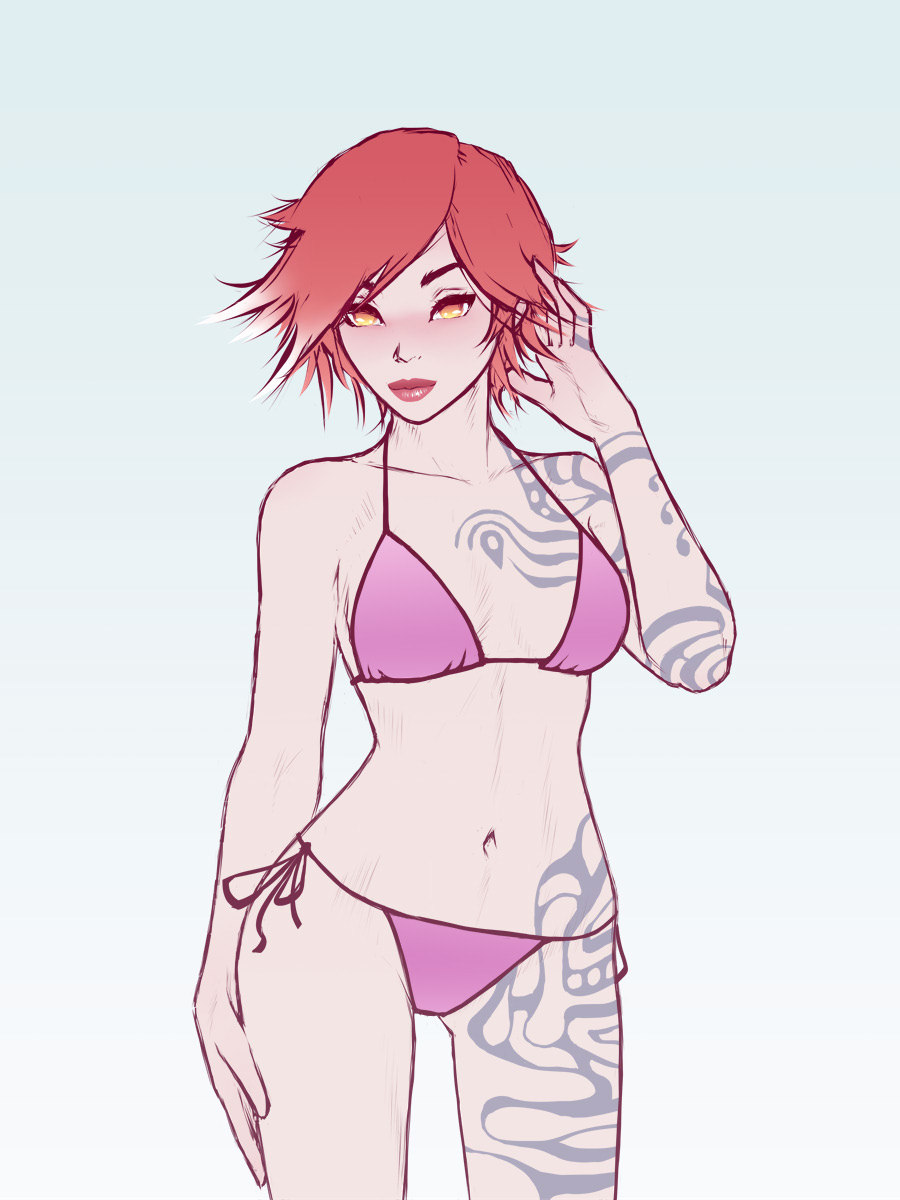 Found an old sketch and finished it.Lilith, Borderlands2, bikini from the “True turquoise” bandit tech vehicle skin.