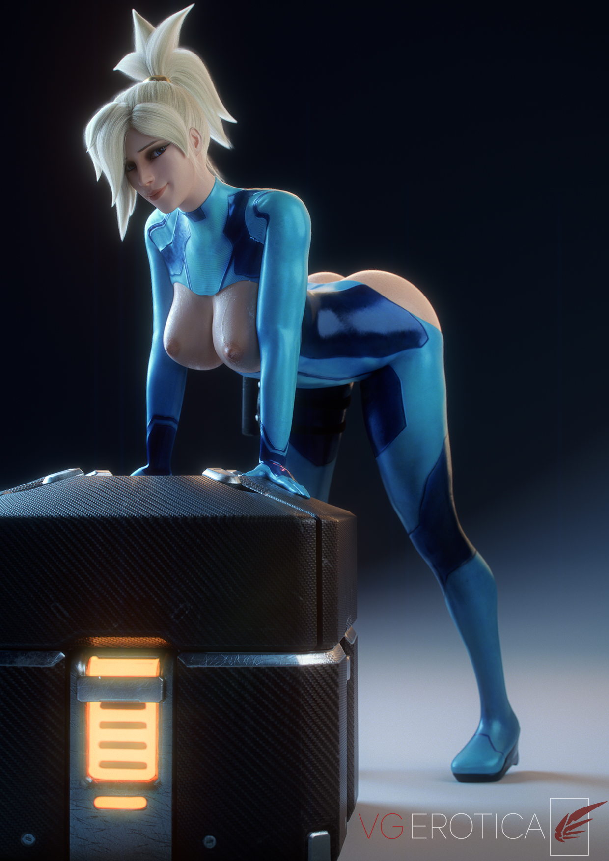 Mercy presenting her pussy to the viewer.