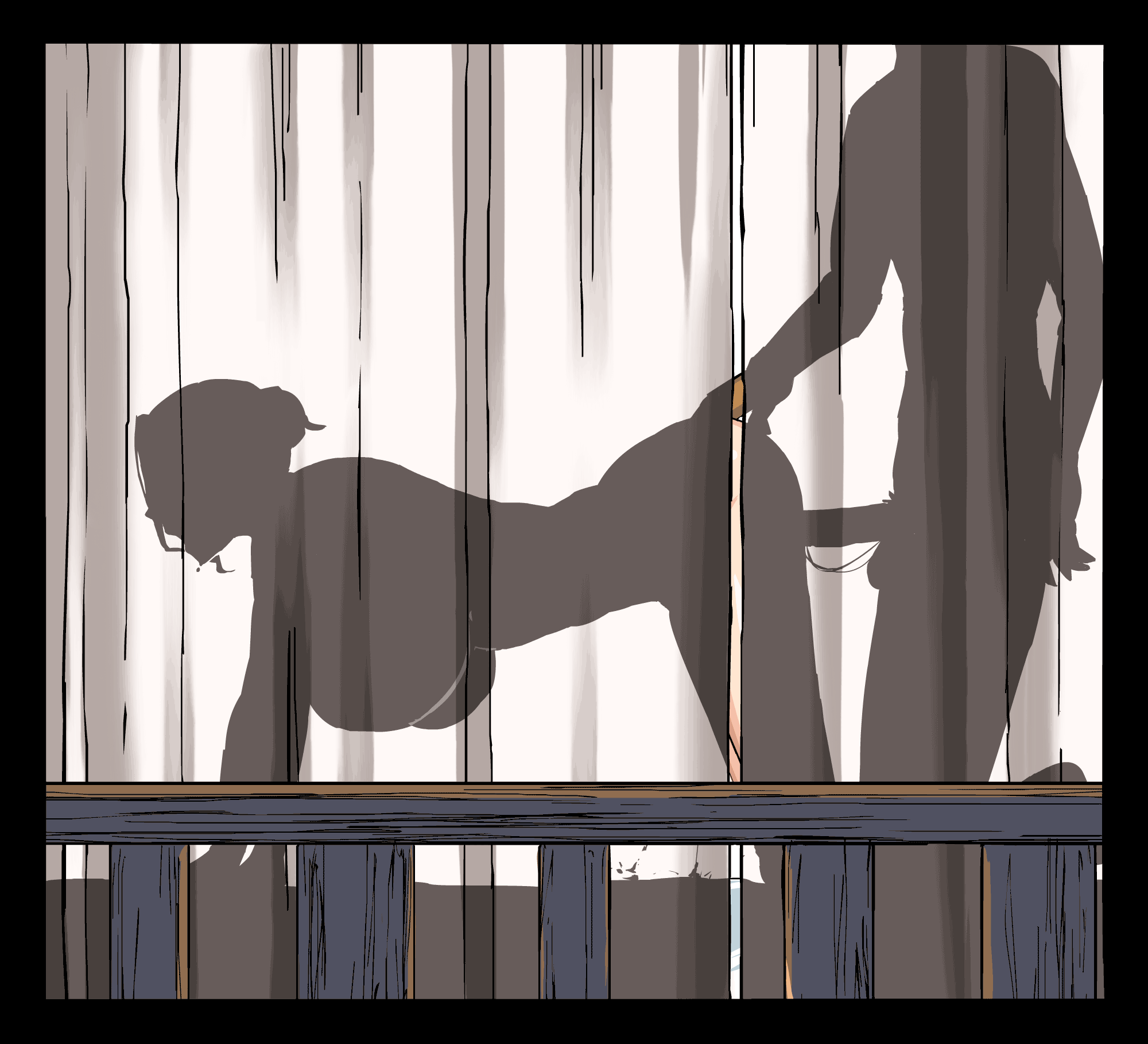 Silhouette Action In The Curtain