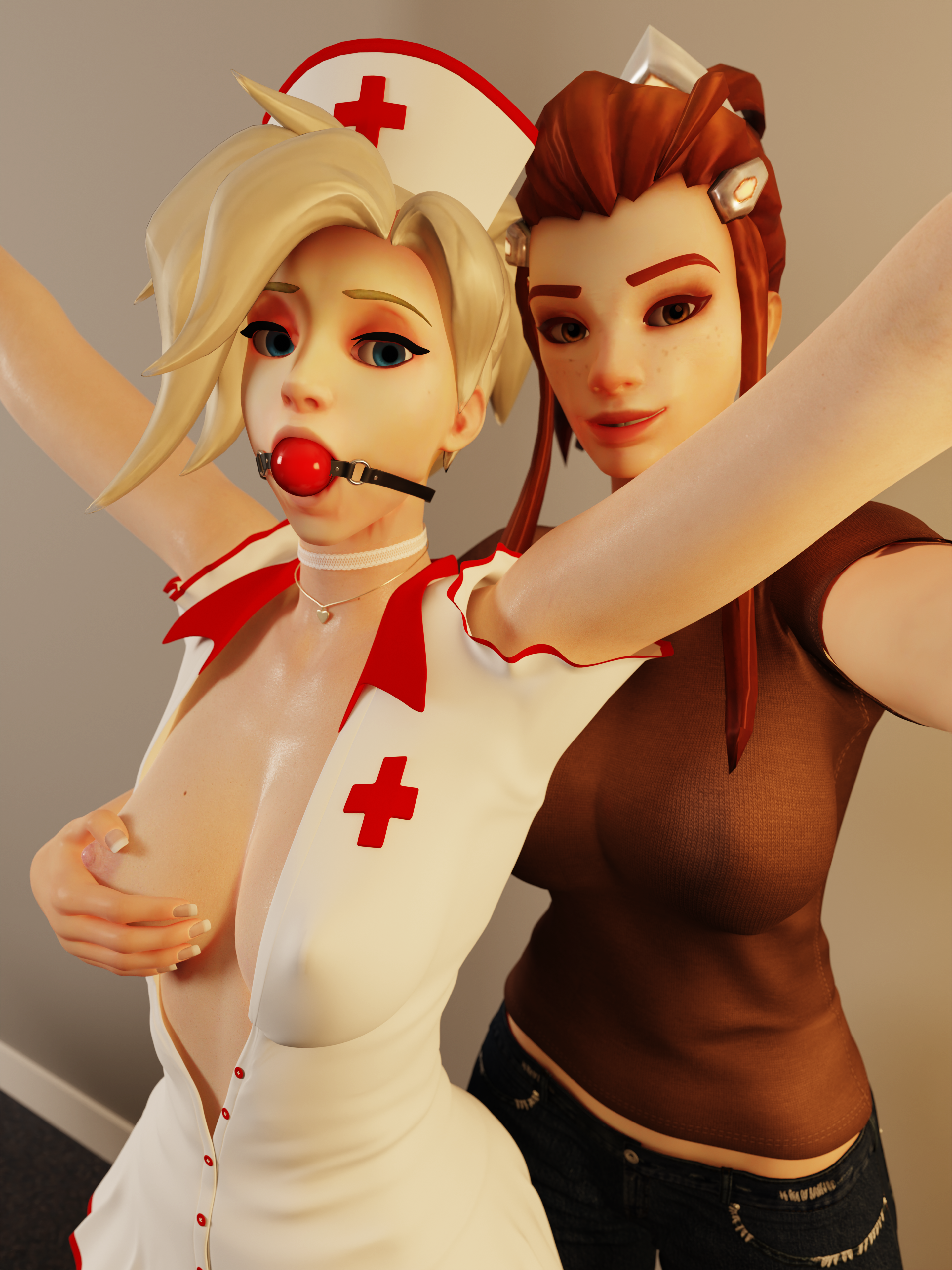 Brigitte and Mercy. Models by @arhoangel. Also, happy new year everyone! Based on a commission by keppy. Extra variant is available on my Patreon (https://t.co/qqm83ShvS6)