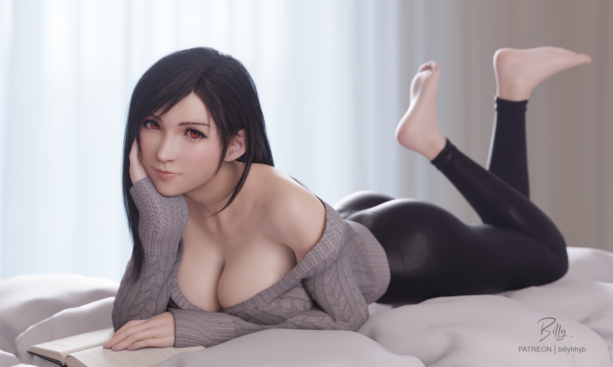 Tifa Lockhart and Cloud Strife having sex on a bed.